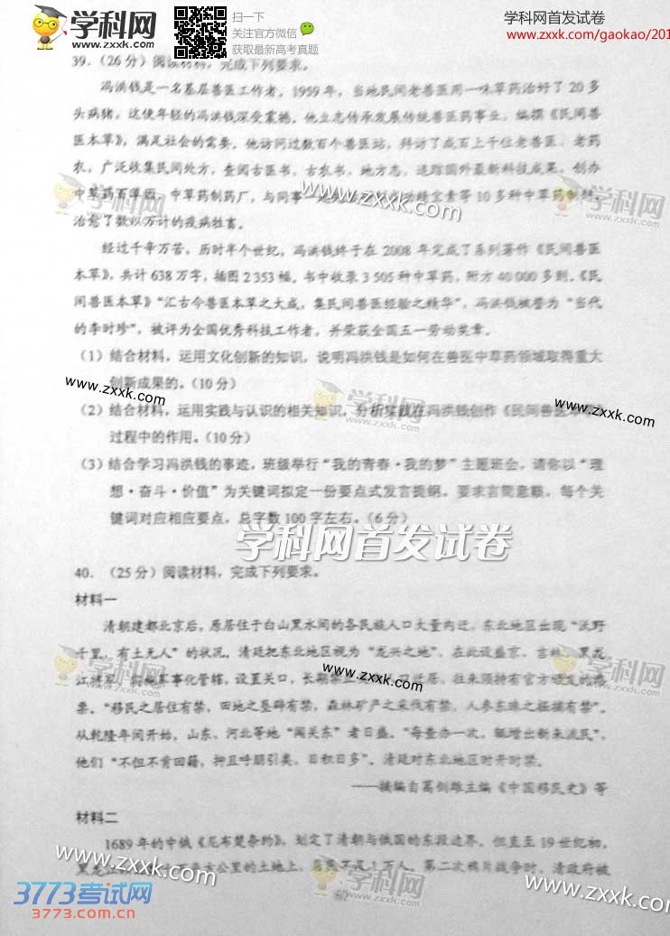3773考试网2016高考宁夏高考正文