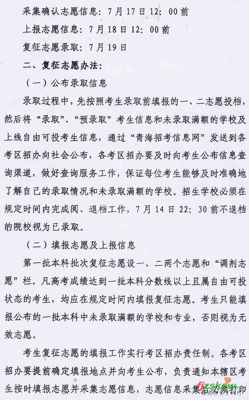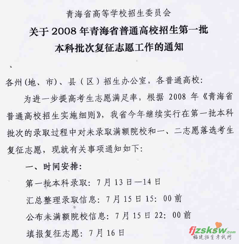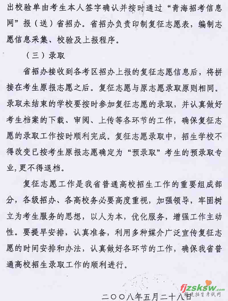 [组图]2008年青海省高考招生第一批本科批次复征志愿通知