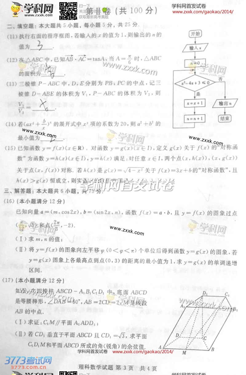 [图文]2014山东高考数学理科试题卷发布(含部分答案)