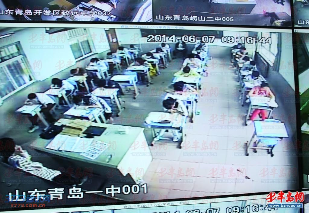 “大屏幕现在是 32块小屏幕,全市的30个考点的1313个考场都能通过循环的方式显示出来。”7日8时30分左右,记者来到位于市招考办的“青岛市国家教育考试考务指挥中心”,相关负责人告诉记者,不光考场里有高清摄像头保障考试安全与公平,保密室、监控室、考务室等都有摄像头严密监控。“试卷所到达的地方都有摄像头监控。”该负责人称,全市用在高考监控上的摄像头接近1600个。