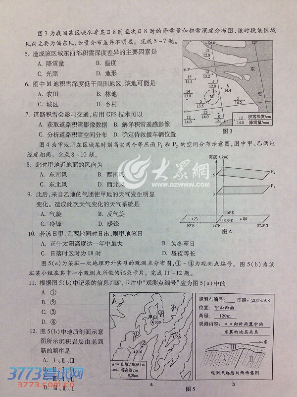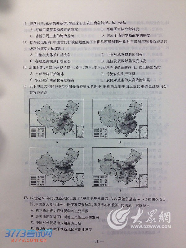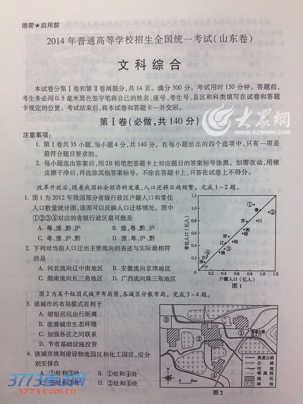 [组图]2014山东高考文综试题及答案(文科综合)