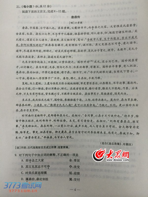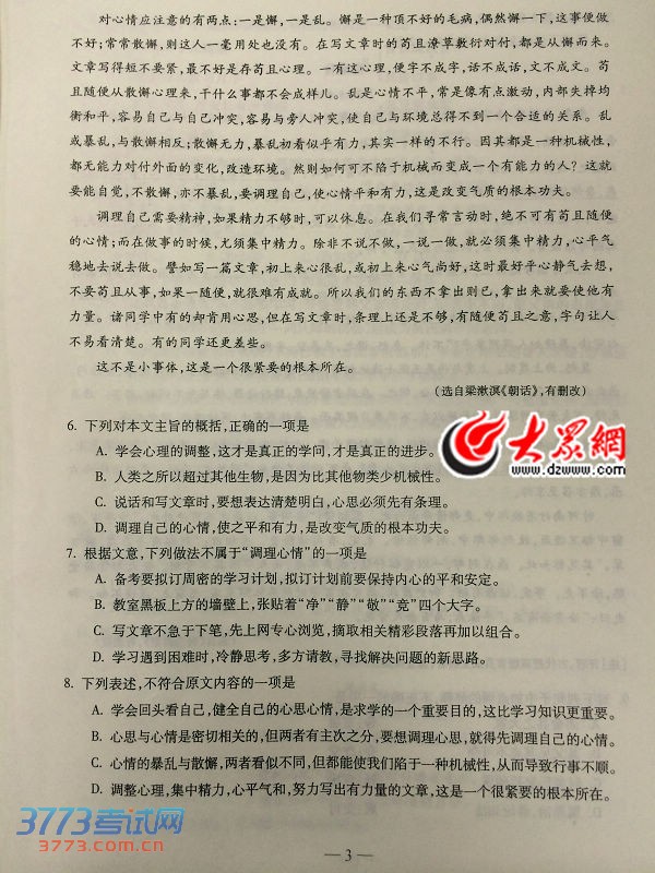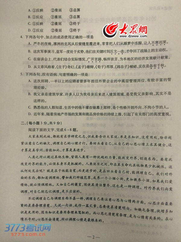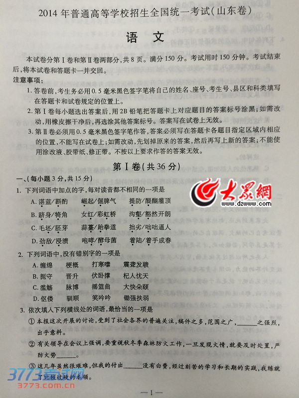 大众网6月8日讯 今天下午,2014年山东高考落下帷幕,大众网第一时间对试题及答案予以公布。以下为语文试题及答案: