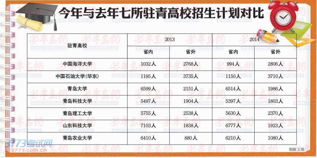 7高校省内招生减749人 家门口上学的机会减少,首先从七所驻青高校在省内的招生数量上可见一斑。根据驻青七所高校今年的招生计划统计,七所高校在省内的本专科招生计划2013年是33621人,今年是32872人,相比减少749人。其中,七所高校本科招生计划去年是29221人,今年是28672人,减少549人,七所高校2013年专科招生数量是4400人,今年是4200人,减少200人。