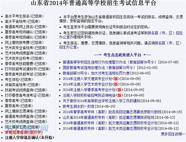 本平台是考生参加山东省普通高校招生各类统一考试的报名、成绩查询、志愿填报、录取查询的指定平台。
