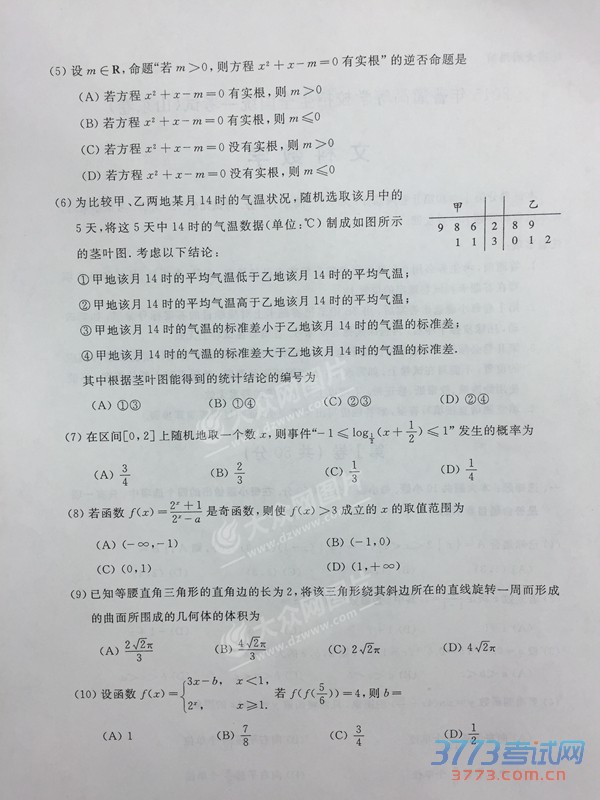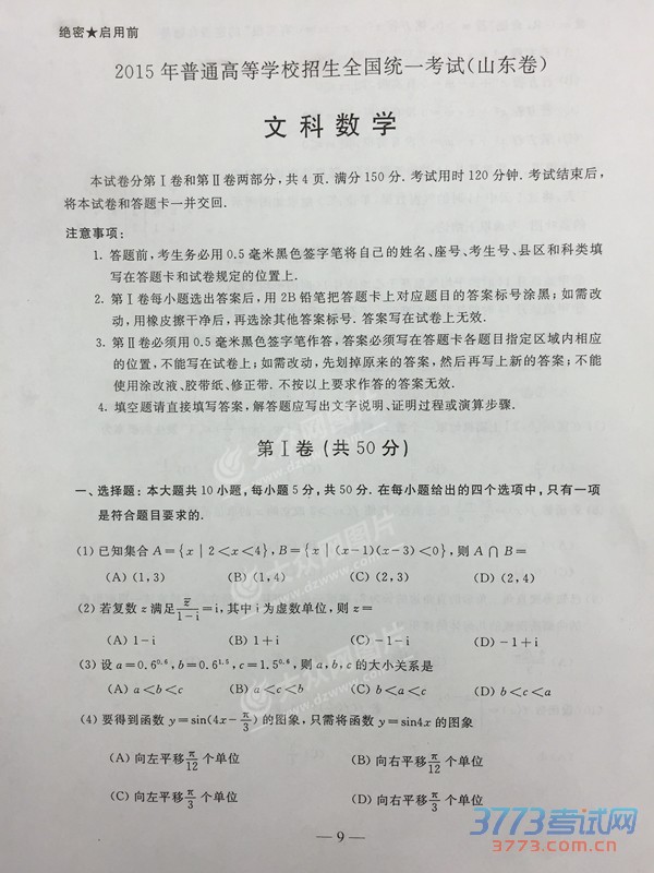 [组图]2015山东高考数学文科试题及答案发布