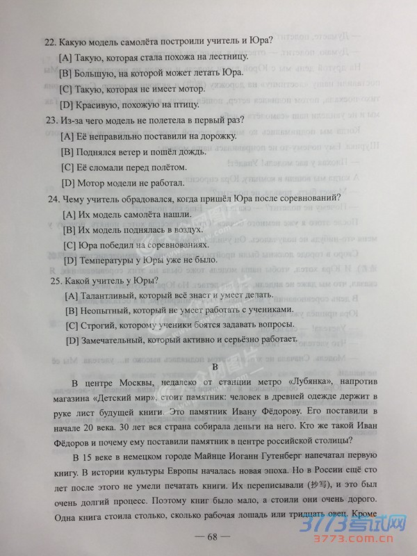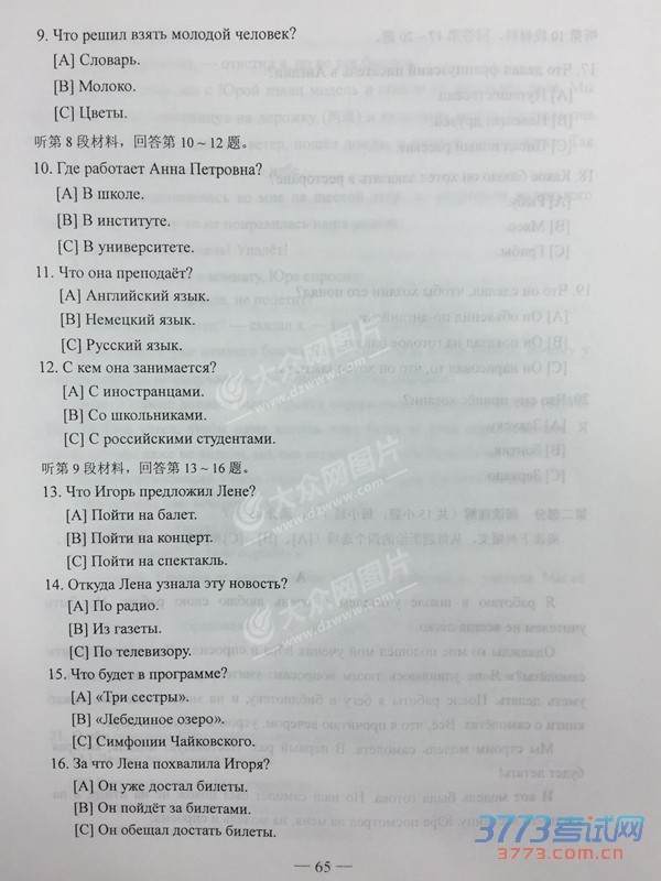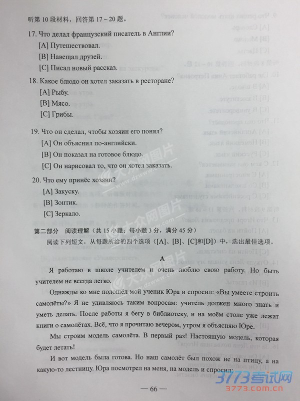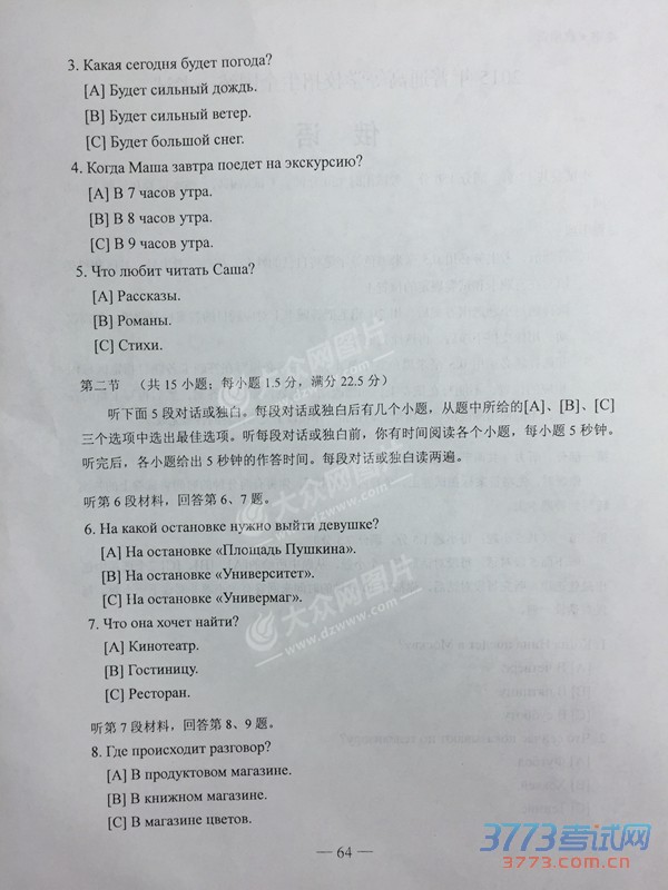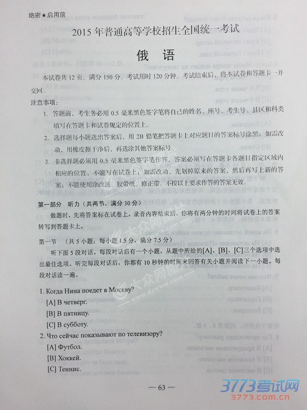 第一时间对试题及答案予以公布。以下为俄语试题及参考答案: