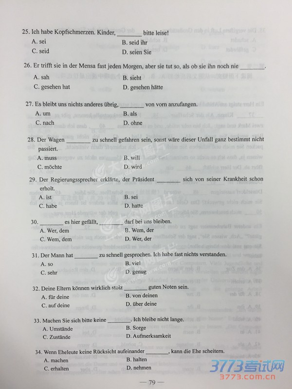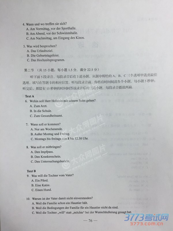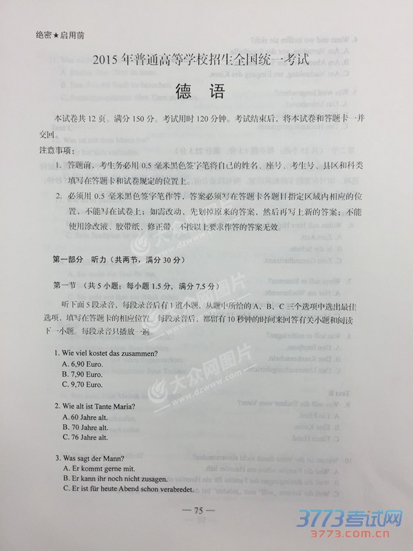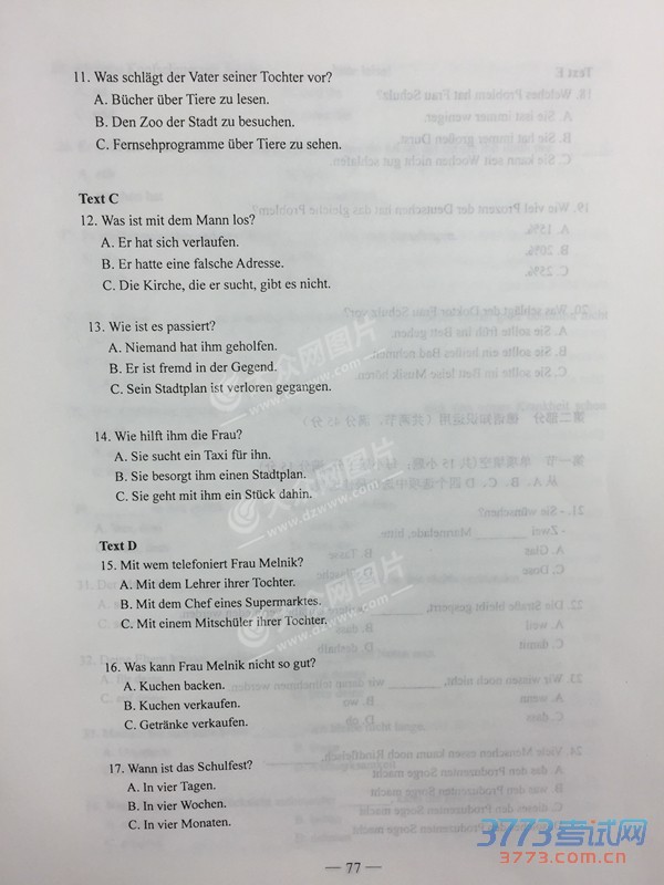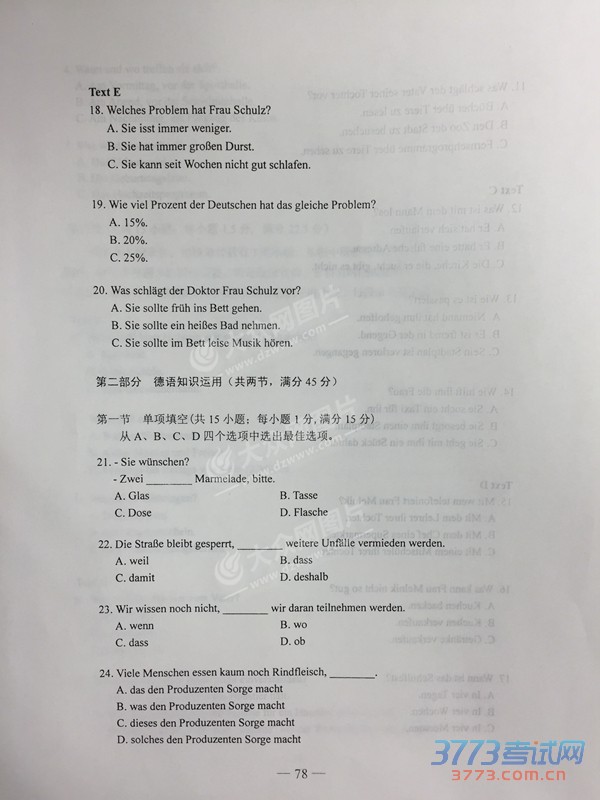 第一时间对试题及答案予以公布。以下为德语试题及参考答案: