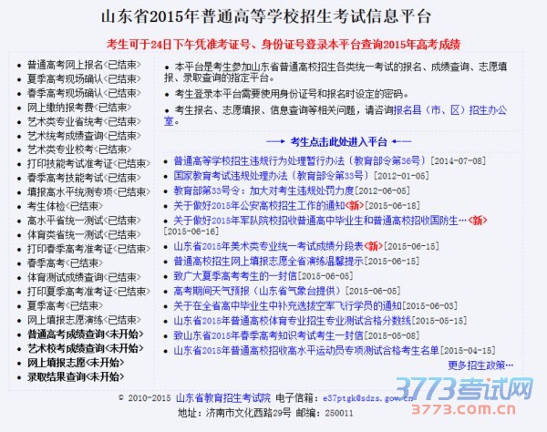 [组图]2015山东高考成绩查询方式:http://wsbm.sdzk.gov.cn