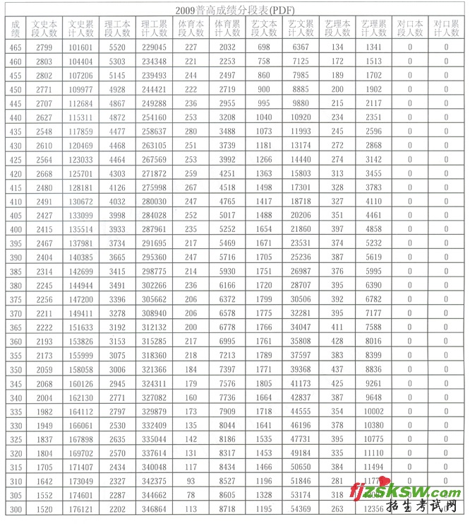 [组图]2009年山东省高考成绩分段表排名