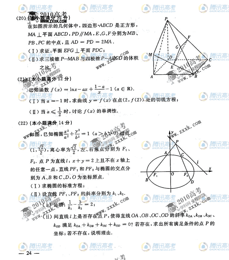 [组图]2010年山东高考数学文科试题答案