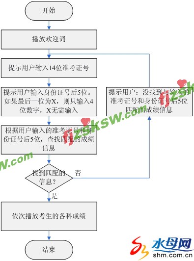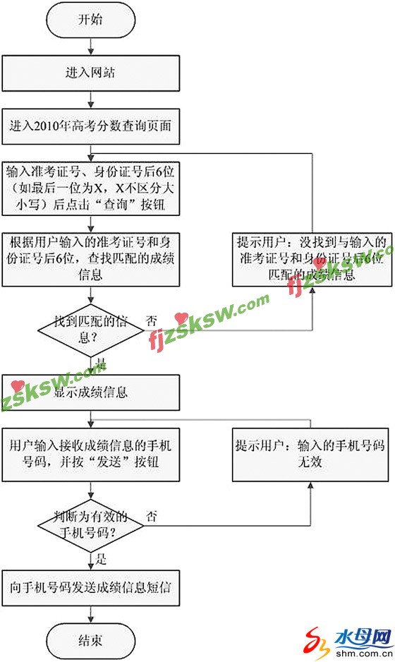 网上查询登录山东省教育招生考试院信息网(http://www.sdzk.gov.cn)。查询时需要输入准考证号及身份证号的后6位以作验证。为减少用户登录网站次数,用户可以在查询后将成绩信息通过短信方式发送到手机上。参考流程如图表1。