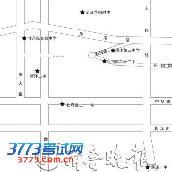 ●考点四:牡丹区二十一中 ●考场数:63个,可容纳考生1890人 ●地址:菏泽市中华路2699号 ●乘车路线:7路、4路、11路、18路车(公交站牌:二十一中站) ●饮食:学校周边饭店、小吃店比较多,学生可以步行去附近找适合自己的饭店餐馆就餐。 ●住宿:中华路上有几家酒店宾馆,标间在100元至200元不等,提供钟点房,价位相对学生较高一些。