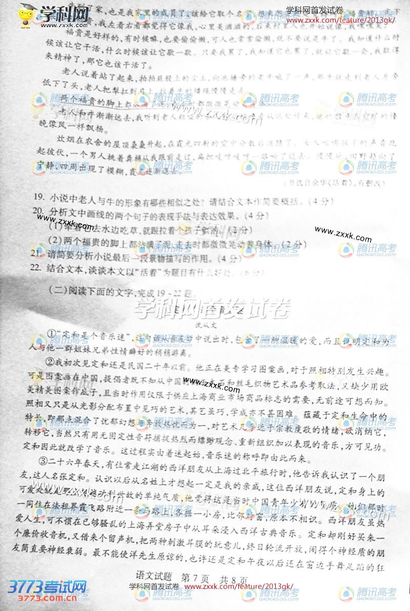 2013山东高考语文试题试卷(图片版)