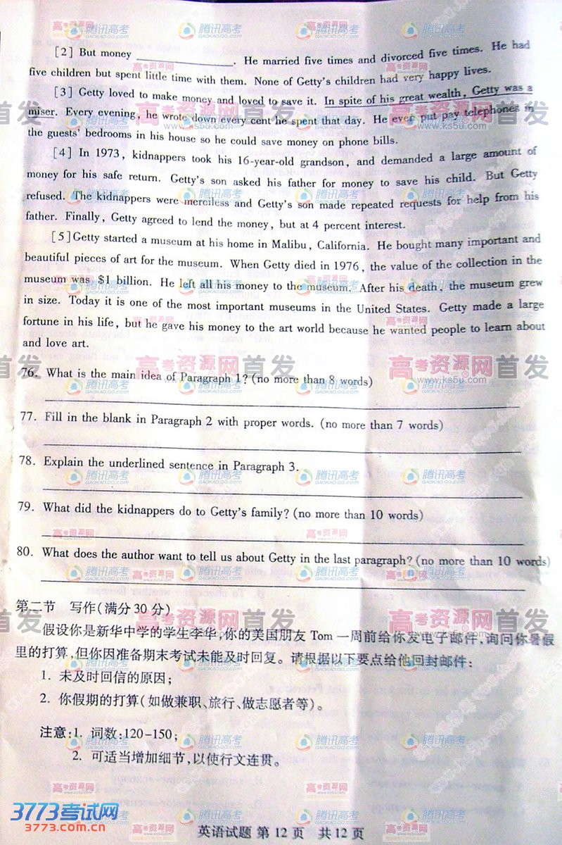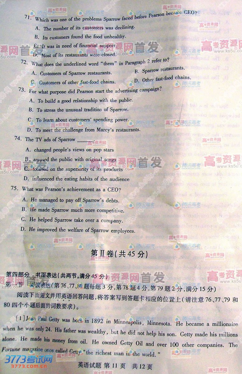 [组图]2013山东高考英语试题及部分答案
