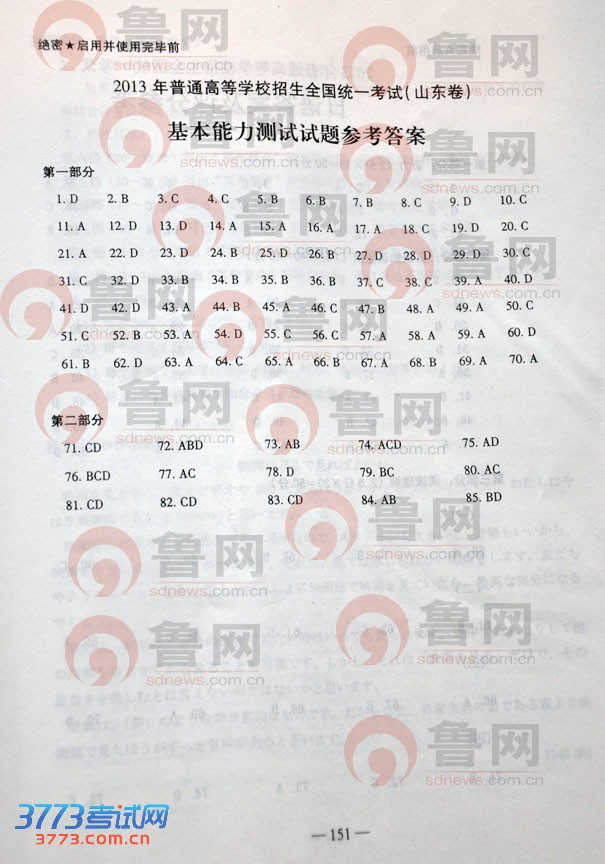 [组图]2013山东高考基本能力测试试卷及答案(清晰版)