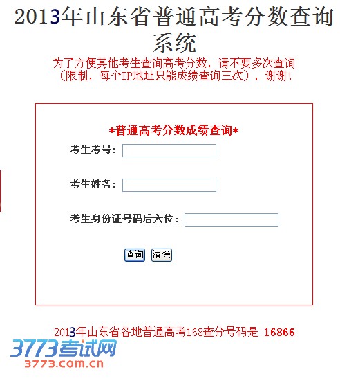 2013山东高考成绩查询查分入口