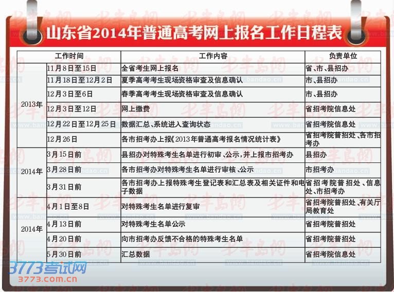 [图文]2014山东春季夏季高考报名11月8日至15日