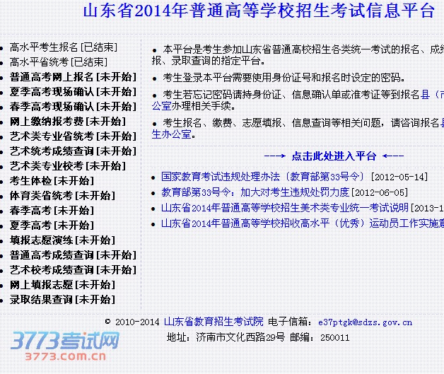 本平台是考生参加山东省普通高校招生各类统一考试的报名、成绩查询、志愿填报、录取查询的指定平台。