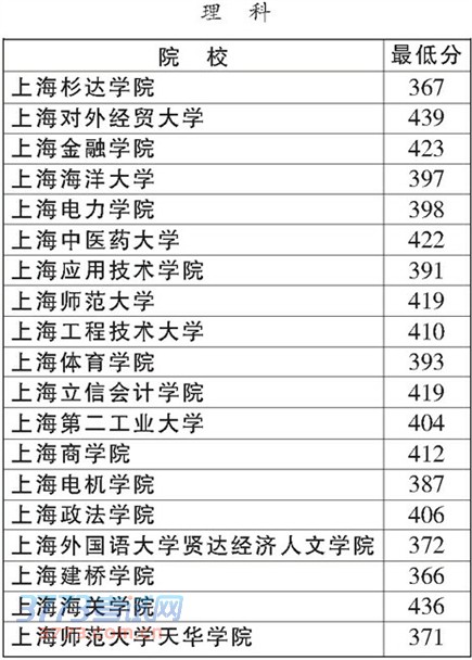 2014年上海市普通高校招生第二批本科高校投档控制分数线昨晚公布。