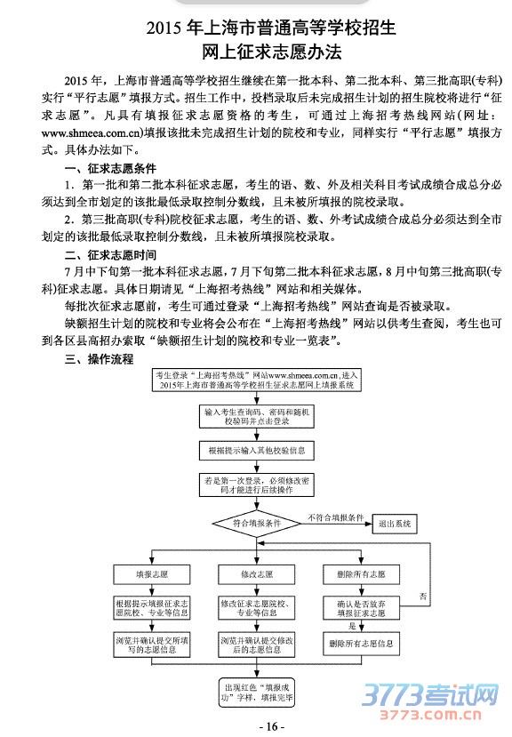 [组图]2015上海高考网上征求志愿时间办法流程