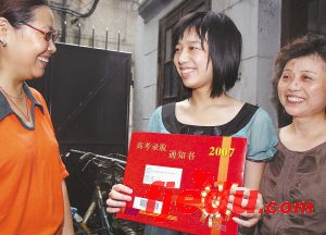 7月10日,上海市第二中学的应届毕业生袁馨收到了华东政法大学的录取通知书。当日,首批高考录取通知书开始投递。(新华社 记者刘颖摄)