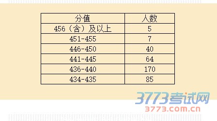 第一批本科 文科合成434分(含434分)以上可填报征求志愿考生成绩分布情况