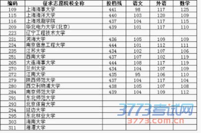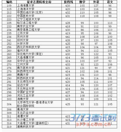 图说:2015年上海市普通高校招生一本征求志愿各校投档分数线(理科)