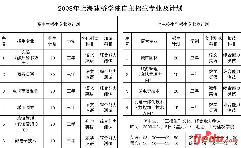 7、招生对象:(1)符合2008年秋季高考报名条件的上海户籍上海学籍高中阶段毕业生(含三校毕业生);