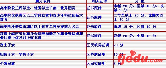 十一、加分政策: (以下加分只能享受其中一项最高分,不作累计加分):