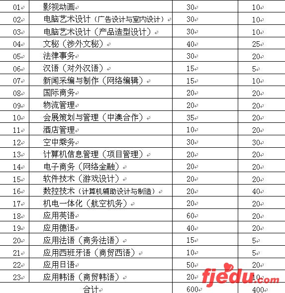 四、招生总计划、分专业招生计划和有关说明:招生总计划1000人,其中普通高中毕业生计划600人,中专、职校、技校毕业生(以下简称“三校生”)计划400人。招生专业不分文理科。