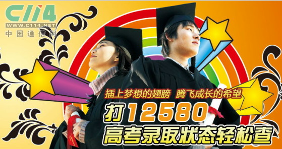 此前,12580已就今年高考开通成绩查询。移动用户通过拨打12580提供准考证,可查询到高考成绩。