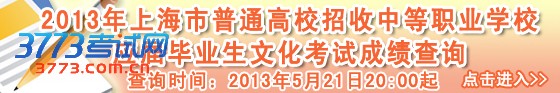 2013年上海市普通高校招收中等职业学校应届毕业生文化考试成绩将于5月21日公布。成绩通知单将于5月22日通过邮政特快专递送达考生。考生若要提前了解自己的考试成绩,可于5月21日20:00起,登录本网站,准确输入本人9位准考证号和身份证号的第4位至第9位,即可查到本人的成绩。