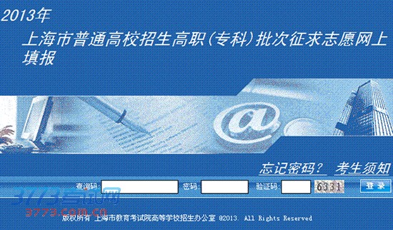 [图文]2013上海高考专科征求志愿网上填报系统入口