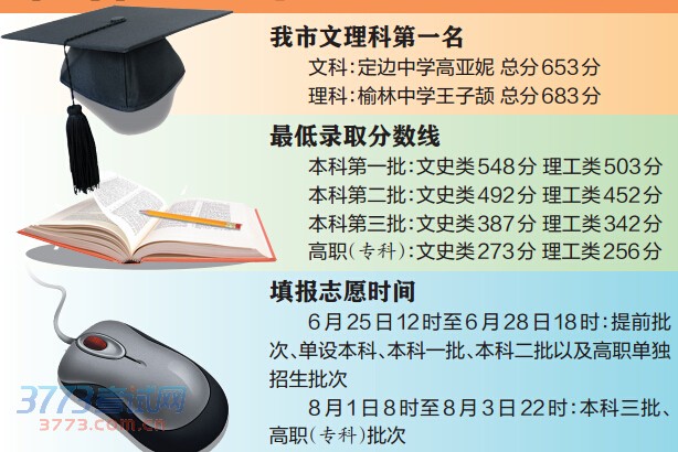 文科是定边中学高亚妮总分653分理科是榆林中学王子颉总分683分