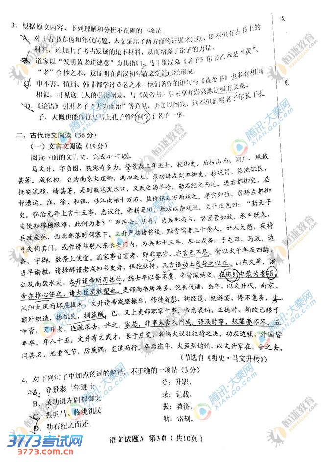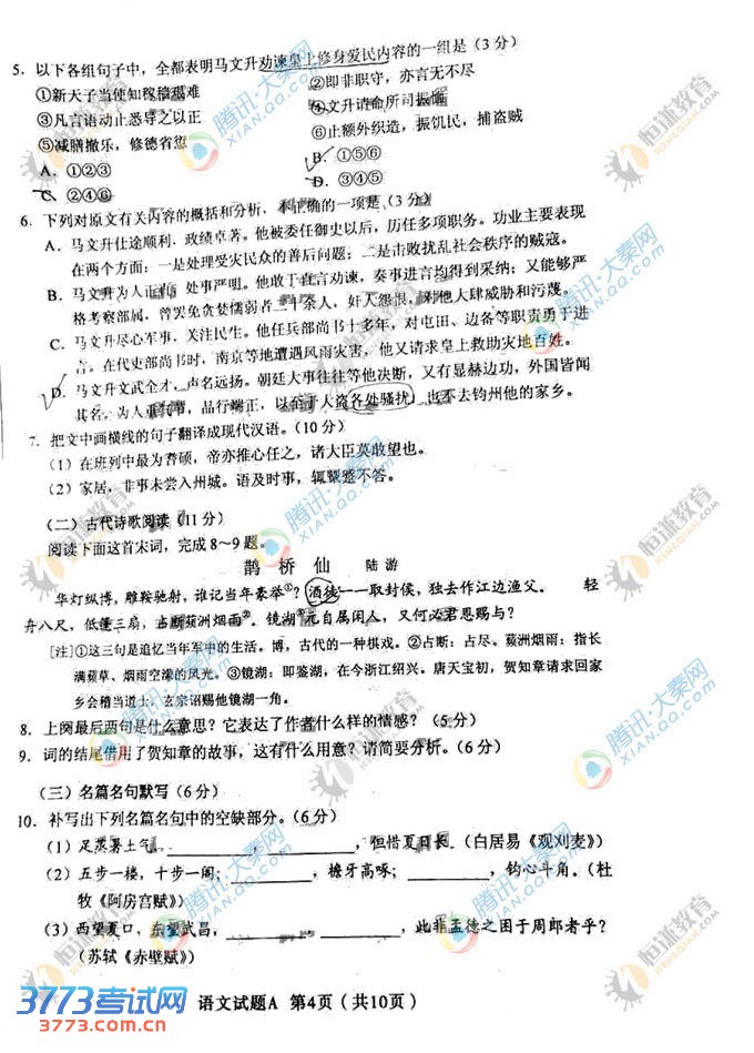 [组图]2013陕西高考语文试题试卷(请关注答案)