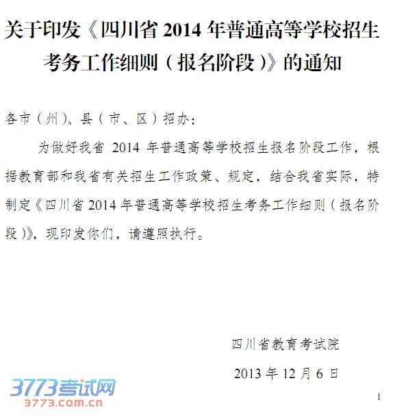 四川省招生考试院 2014年普通高考报名工作细则点击查看详情