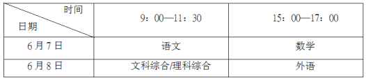 全省高考(一类模式除外)于6月7、8日统一组织进行。各科考试时间安排如下: