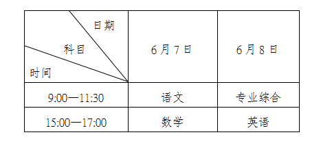 考试时间为6月7、8日。各科考试时间为(北京时间):
