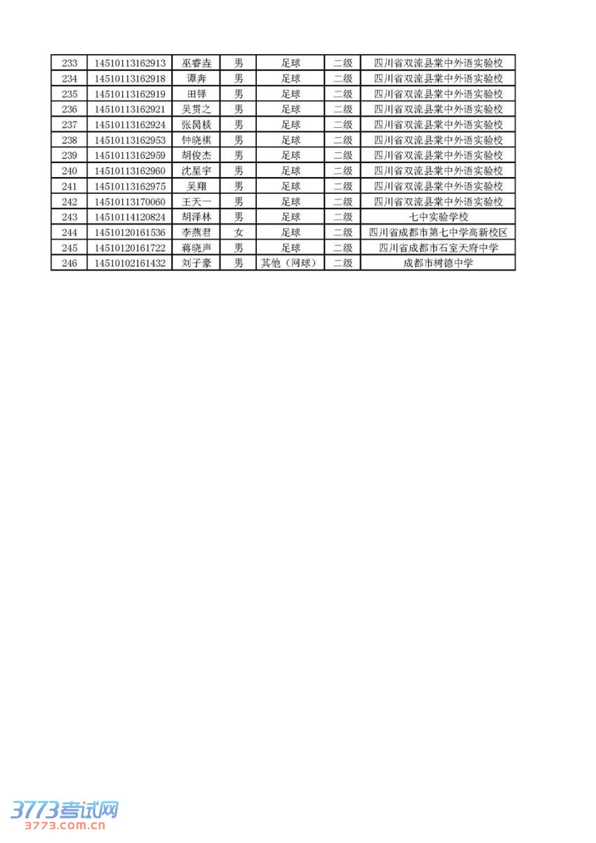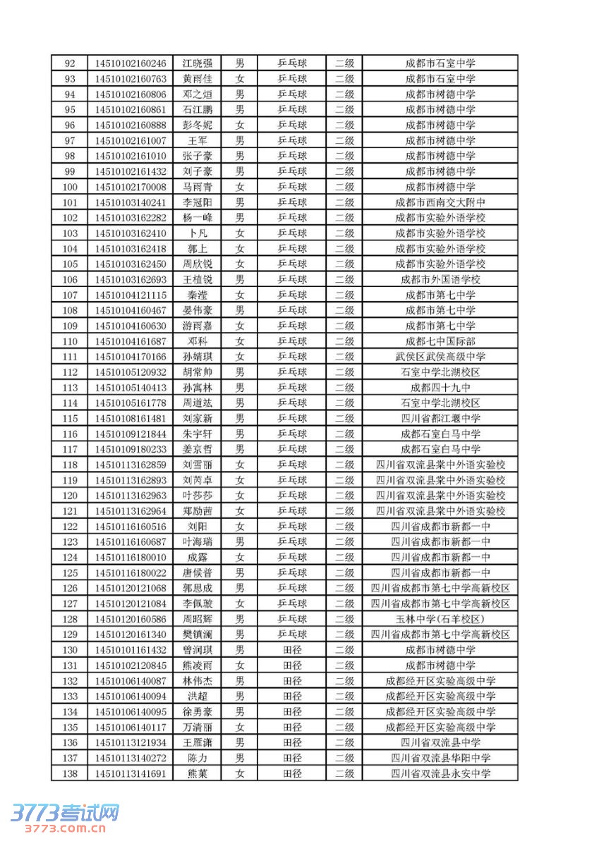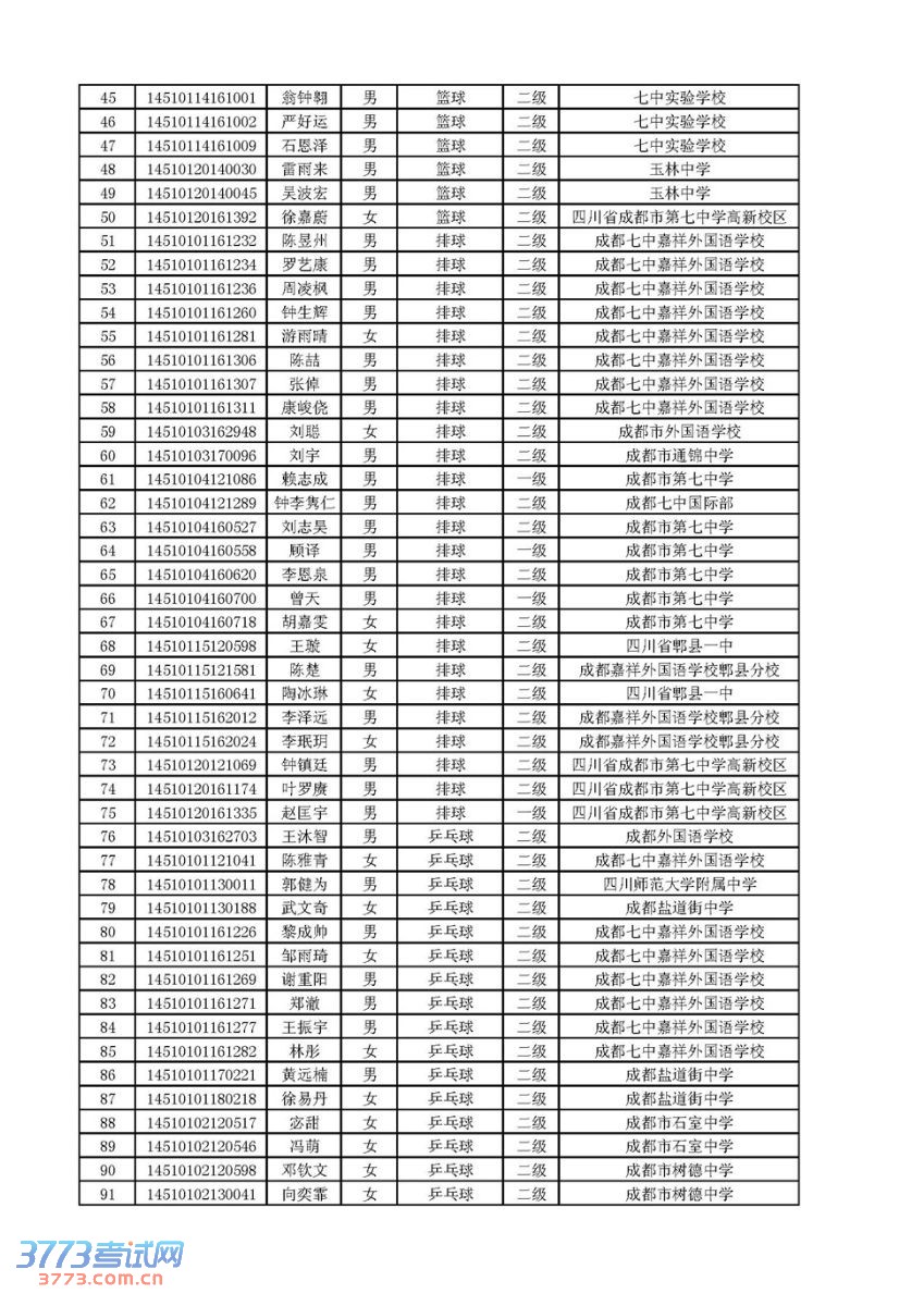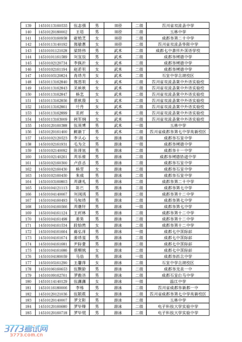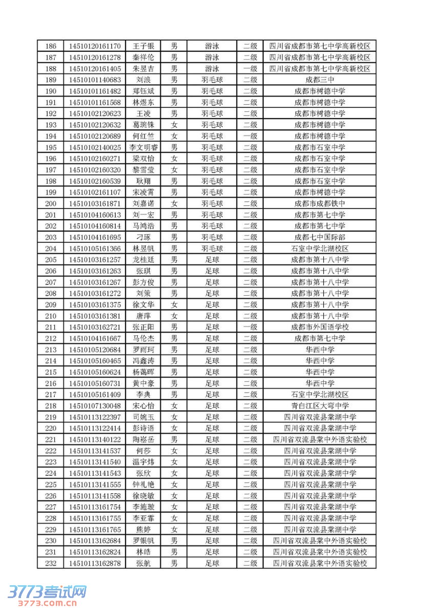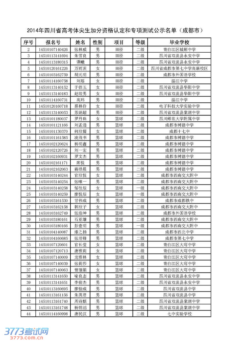 [图文]2014四川成都高考体尖生加分资格认定和专项测试名单