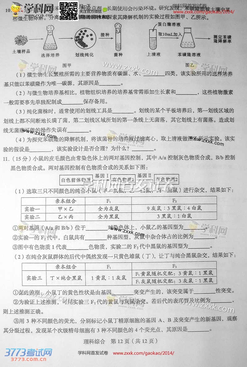[组图]2014四川高考理综生物试题试卷
