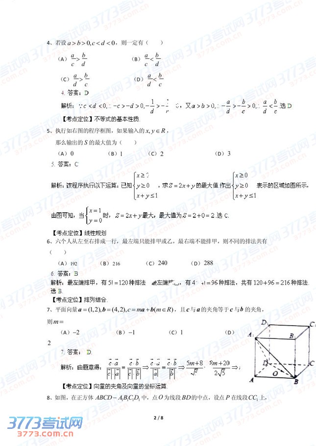 2014年普通高等学校招生全国统一考试(四川卷)数 学(理工类)