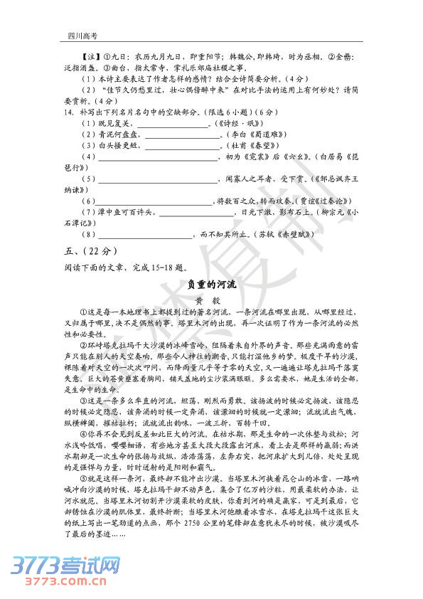 [组图]2014四川高考语文试题试卷发布