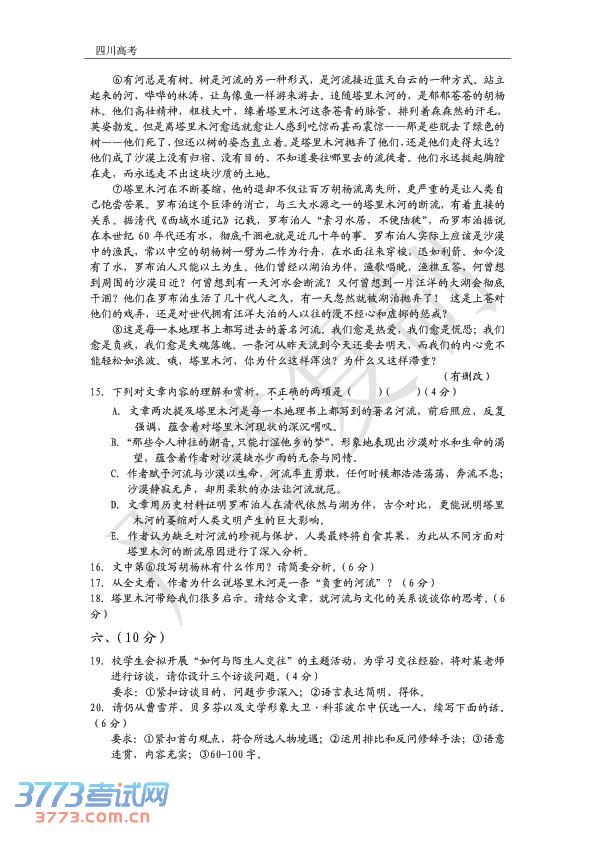 3773考试网2016高考四川高考正文