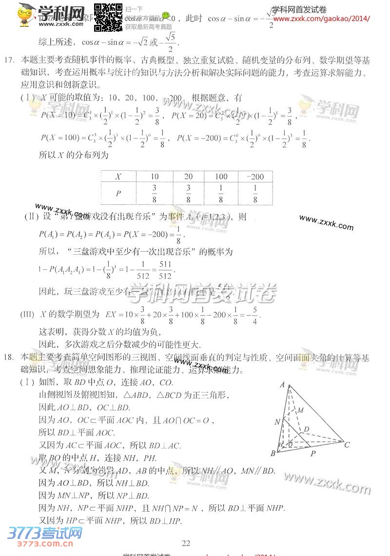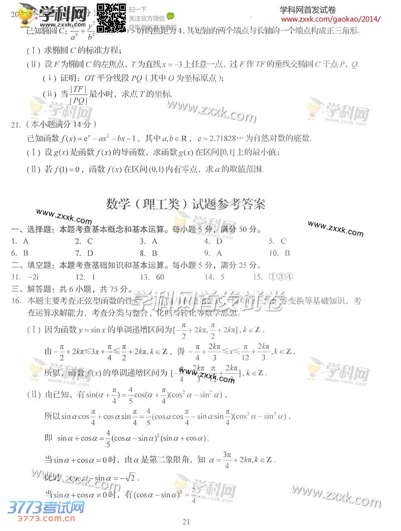 2014四川高考数学理科答案发布