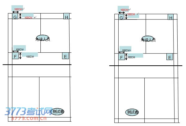 (2)测试要求:前后移动没有踩线和触网为没有完成测试,考评员宣报没有完成的考生要重新踩线或触网才能继续完成后面的测试。左右移动时没有触线或在左侧场区边线触线后没有面对球网转体为没有完成测试,考评员宣布后考生要重新触线或回到边线处面对球网转体才能继续完成后面的测试。
