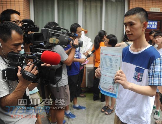 在王阳超的家中,记者见到这个瘦瘦高高的男生,他彬彬有礼的招待记者落座,在和他交谈中,记者发现王阳超性格有些内敛、腼腆。今年18岁的他是成都实验外国语学校2011级的学生,上午接到父亲电话,才得知自己将是四川省首个收到录取通知书的考生。