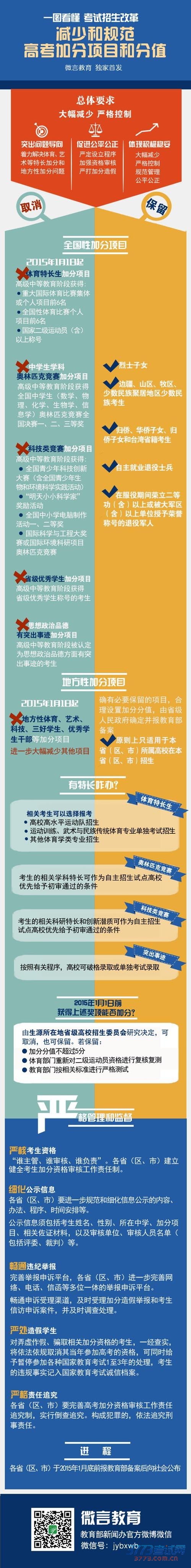 一图看懂考试招生改革:减少和规范高考加分项目和分值