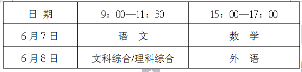 5.全省高考(一类模式除外)于6月7、8日统一组织进行。各科目考试时间(北京时间)安排如下: