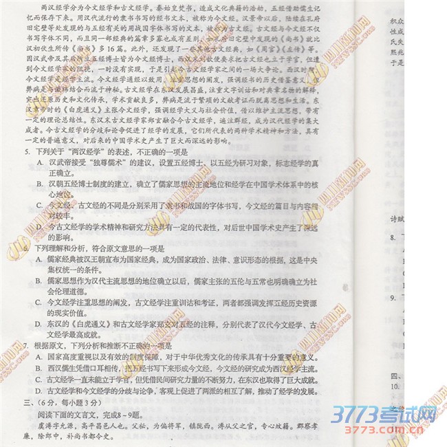 3773考试网2016高考四川高考正文