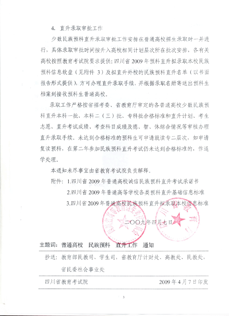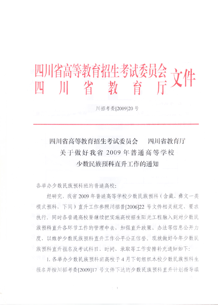 [组图]四川省2009年普通高等学校少数民族预科直升工作的通知